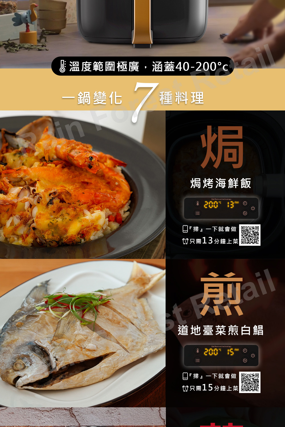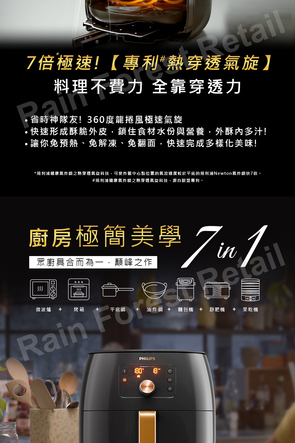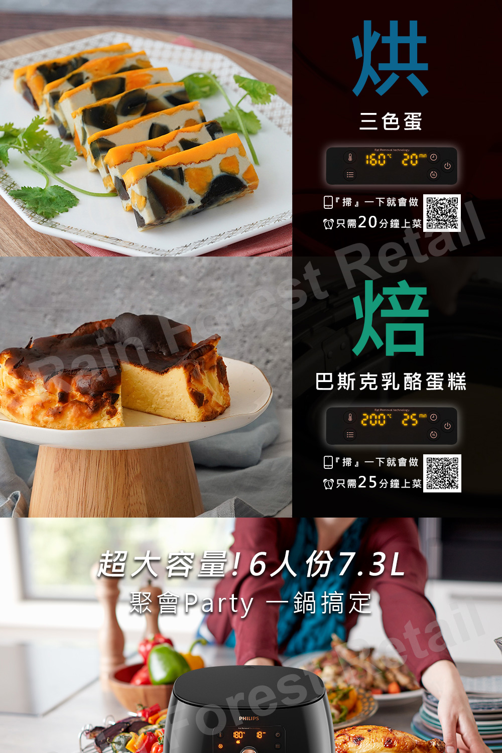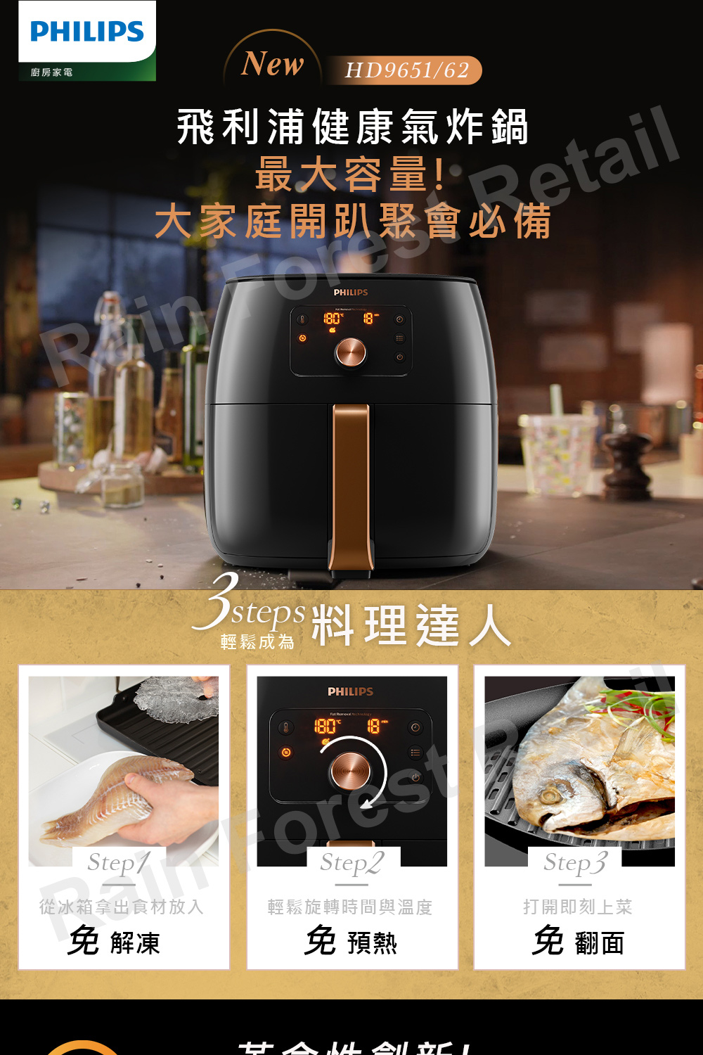 【飛利浦 PHILIPS】熱穿透氣旋智能大容量尊榮氣炸鍋7.3L-XXL(附串燒架)HD9651