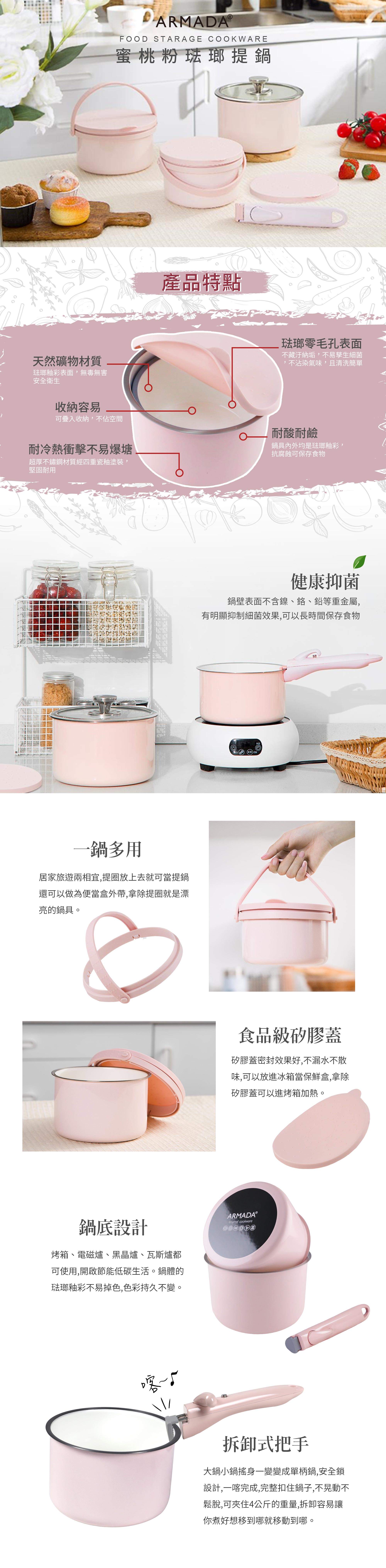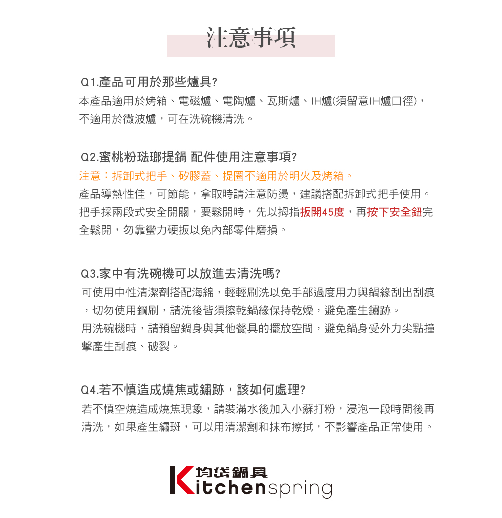 ※注意:拆卸式把手、矽膠蓋、提圈不適用於明火及烤箱。