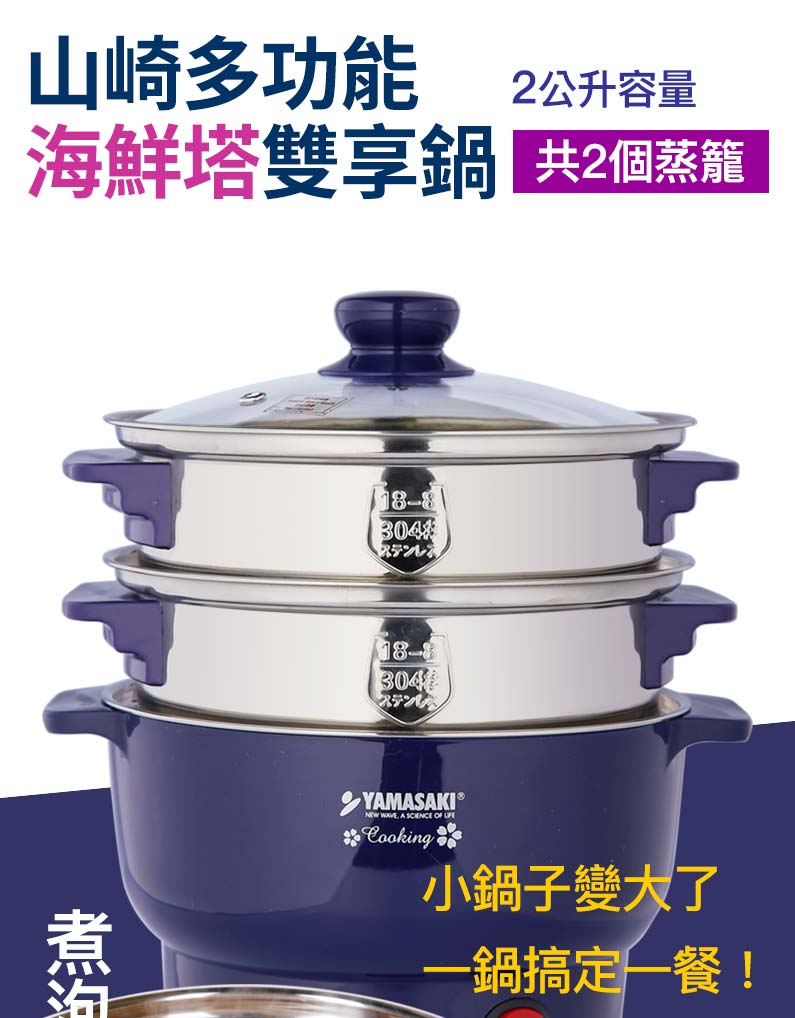 YAMASAKI山崎多功能海鮮塔雙享鍋 2公升、附蒸籠2個
