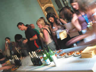 人家說,中國是好食的民族,然而義大利人不僅好食,他們更懂得挑時間吃東西。義大利人重視晚餐勝過午餐,但是晚餐時間大約在九點左右,創意十足的義大利人於是創造了一個「點心時間」,讓這個胃口奇佳的民族在午、晚餐之間有食慾緩衝的時間。儘管吃完點心,酒足飯飽,然而過了點心時間,晚餐時刻一到,又是一條活龍,繼續在餐桌上馳騁。