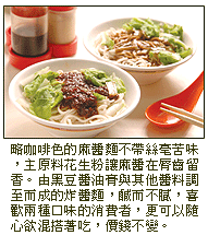 各式醬麵的醬料吃法不只一種,可以混搭著吃,若是喜歡稍鹹口味者,可以嚐試「炸麻麵」,依個人口味決定「炸醬」和「麻醬」比重,要鹹、要淡很自由。