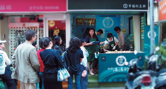 「祝你幸福!」這句話此起彼落,以期許自己幸福,也要別人跟自己一樣幸福的原點出發,因此以「祝你幸福」為slogon,將每個紅豆餅,當作是兩人傳遞幸福的蒲公英。