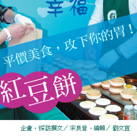 蔣昆伯說:「製皮的麵糊加入打發的蛋白,以麵粉混合牛奶和蛋黃,攪拌均勻而成,為了讓餅皮吃起來口感有天然蛋香,並有綿密厚實的味道,多放了一倍的蛋,且不採用安定劑,因為這點一次不能做多,只能在製作前才打泡蛋白,混入麵粉,1斤麵粉只能做25個紅豆餅。」 |