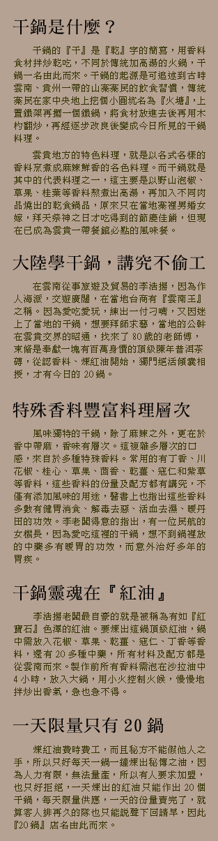 貴州麻辣黃燜雞、重慶干鍋羊肉、貴州酸湯魚、胡辣魚